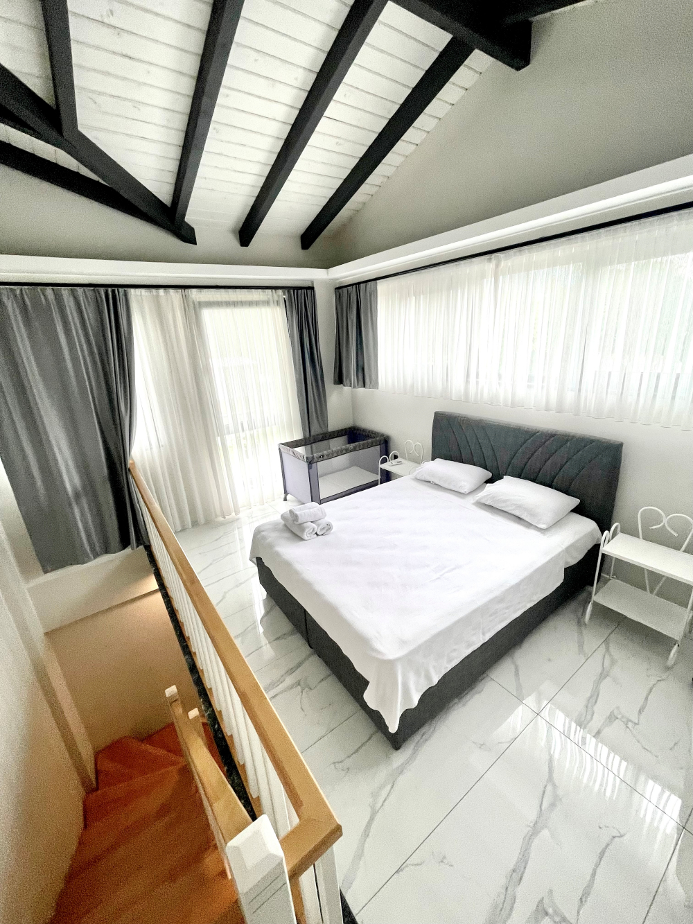 - 1 çift kişilik yatak ve 1 tek kişilik yatak